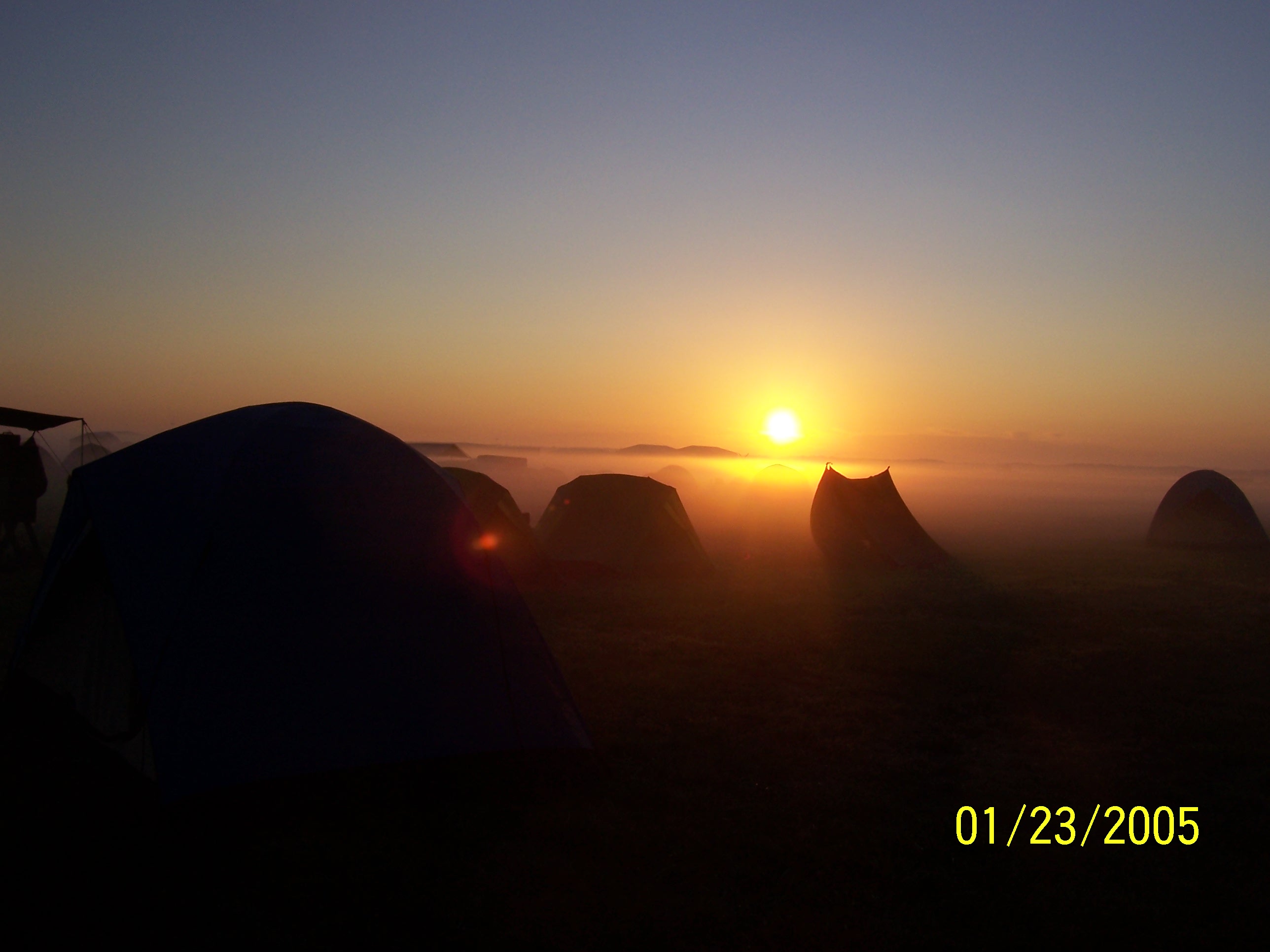 I am especially enamored of the picture used as the header of this site. To me, it suggests a sun setting on another world — a world of mystery and magic, shrouded in mist. The tent village looks at peace … except for that one tent which the viewer may or may not have yet noticed has been knocked awry. The color and mood of the image fits well with that of the site.