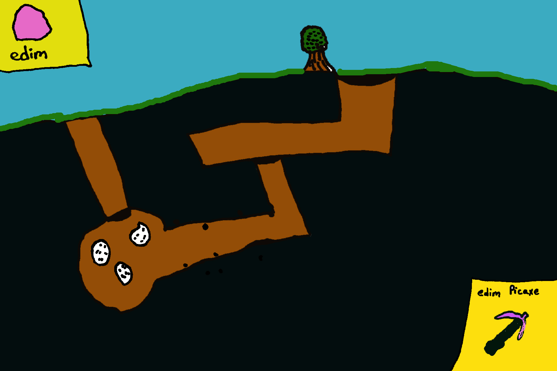 In the long, dark tunnel, Jack picked at the spots of edim and put it into his backpack. Finally, the kids reached the jackpot of edim.